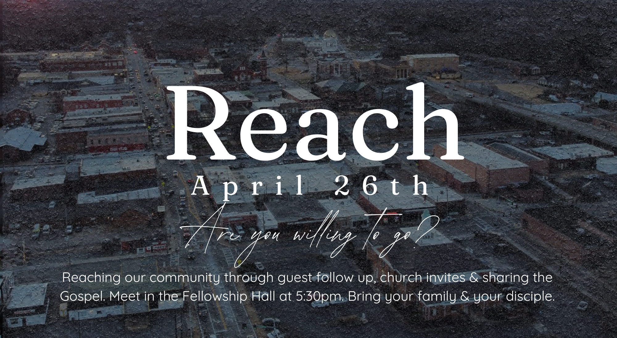 Reach out together to connect the community to the church through sharing the gospel and visitor follow-up.  Disciples, families, and children and encouraged to come along!