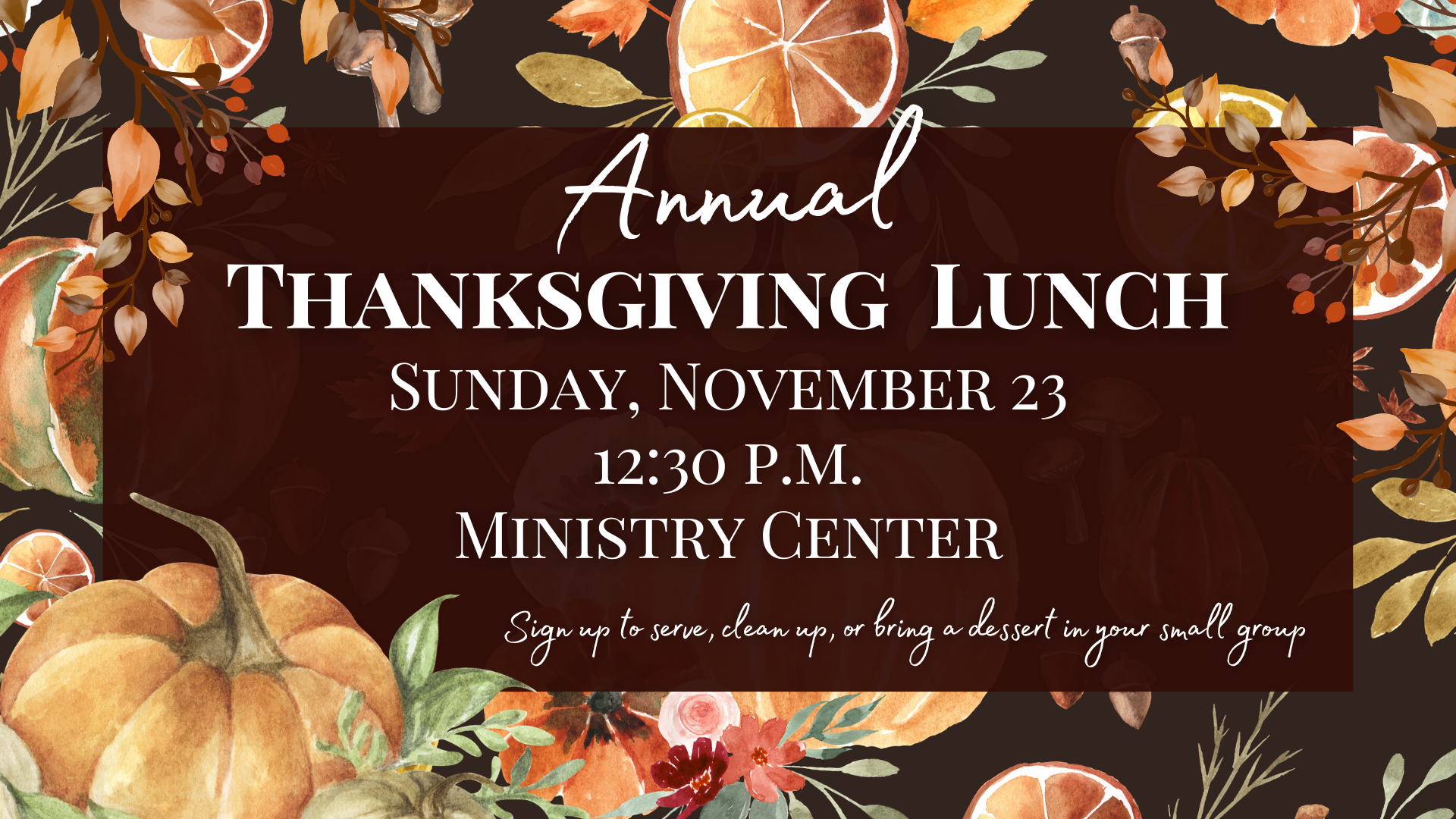 Save the date and join us for OHBC’s Annual Thanksgiving Meal. Help is needed for Serving, Clean Up, and Bringing Desserts. Look for a sign up sheet/QR Code in your Small Group or at the Welcome Desk or click the link to let us know how you can help: https://oaklandheights.churchcenter.com/people/forms/1088258